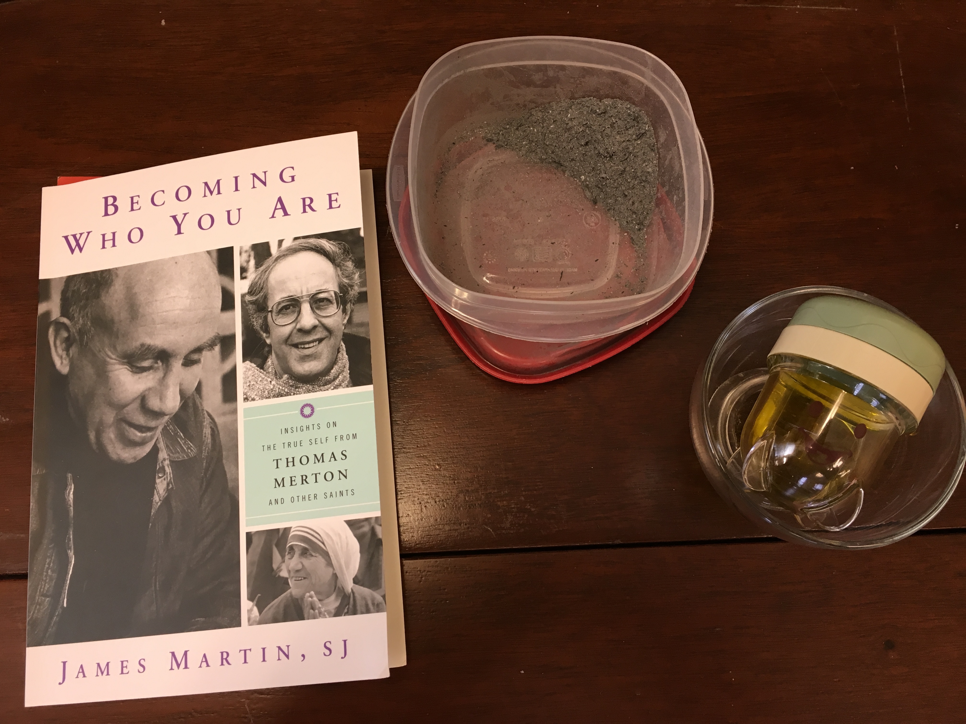 I’m also looking at a book on my desk called Becoming Who You Are by James Martin, SJ. In it, Martin explores insights on the true self from Thomas Merton and other saints. It was a suggestion from Amazon so I picked it up as Lenten reading. What I’ve realized is that I like the participle in the title, “becoming”. We aren’t ever there. We are works-in-progress. So the ashes still sit on our forehead, even after they’ve been wiped clean and we’ve curled up into bed.